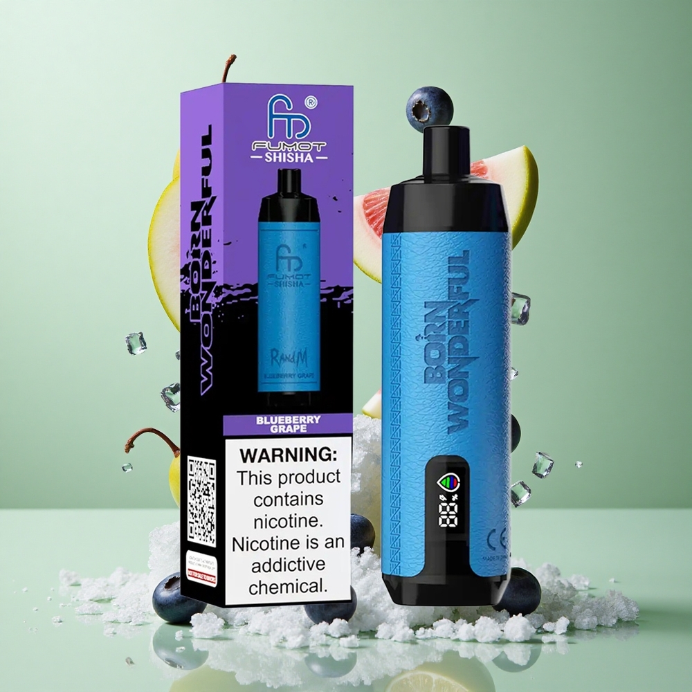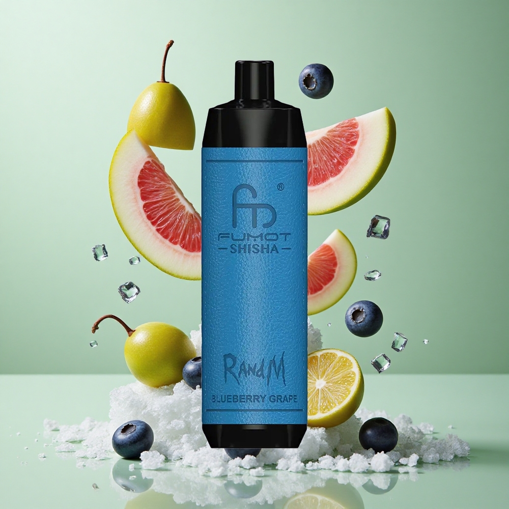 RandM Fumot Shisha 10000 Puffs Zemeņu Vīnogu Shisha Vienreizējās lietošanas Vape ar LED Indikatoru un 18ml iepildītu e-šķidrumu