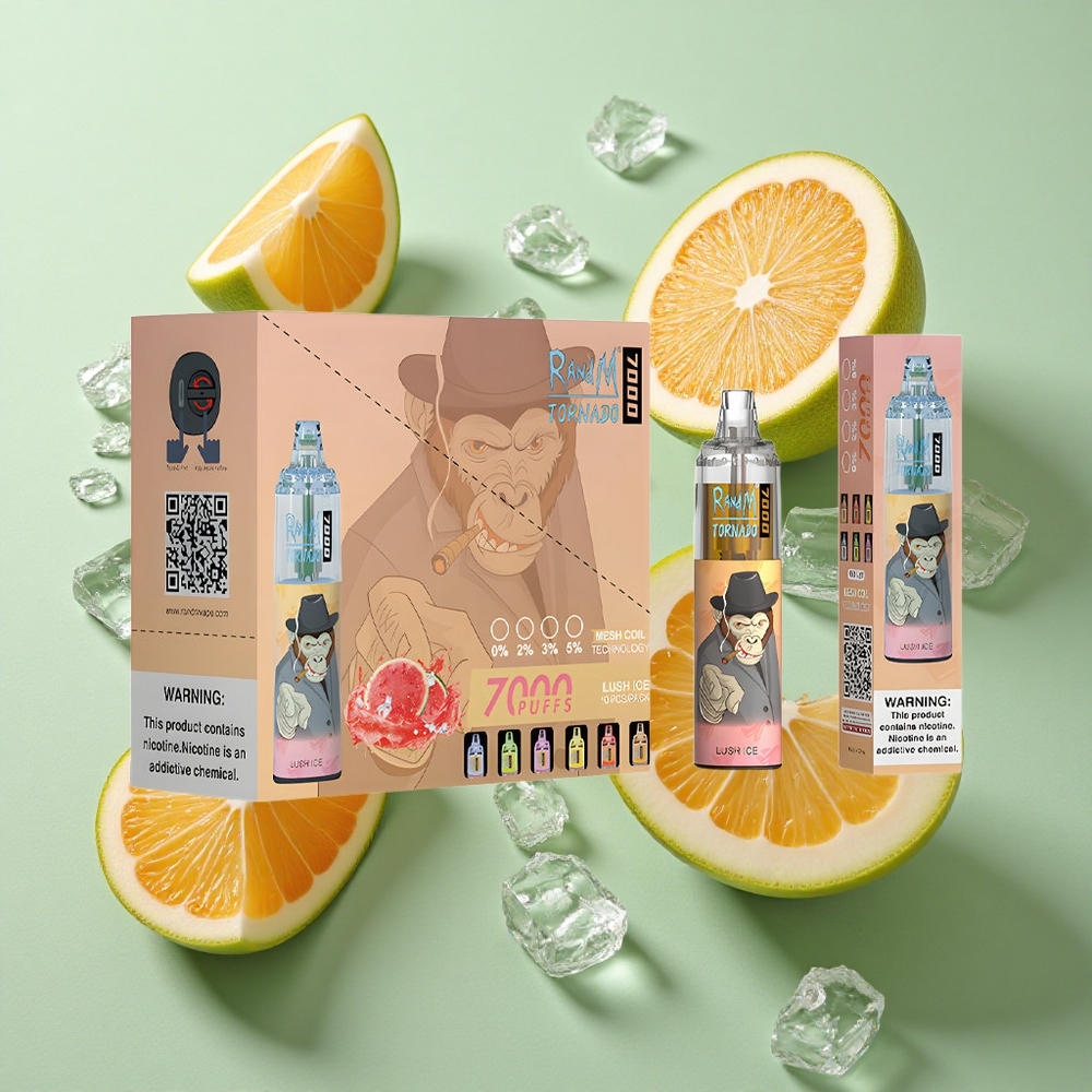 RandM Fumot Tornado 7000 Puffs Lush Ice Ledus RGB Gaisma
