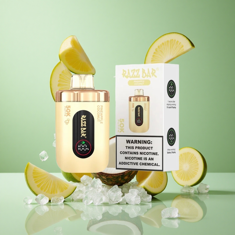 Razz Bar 50K Puffs Ananāsu Kokosriekstu Vienreizējās lietošanas Vape 1.0 Ohm Mesh Coil 650 Mah Battery