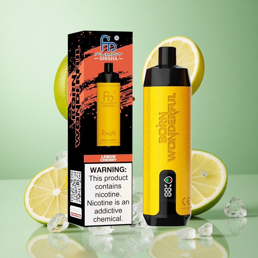 RandM Fumot Shisha 10000 Puffs Citrons Ķiršu Vienreizējās lietošanas Vape ar LED Indikatoru un 18ml Priekšpusē Ieliktas E-gliemežņas