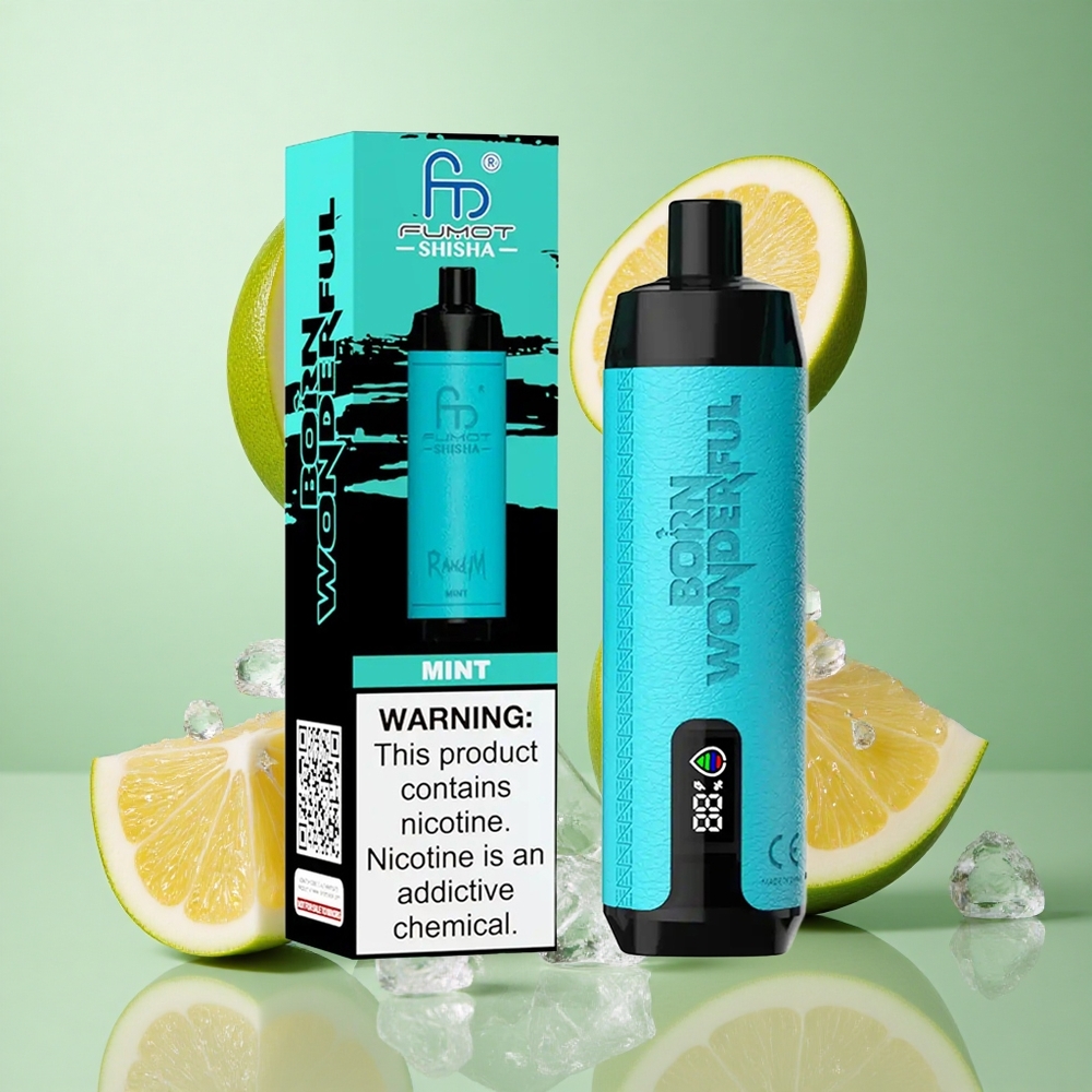 RandM Fumot Shisha 10000 Puffs Vienreizējās lietošanas Vape Mētra ar LED Indikatoru un 18ml Priekšpildīta e-šķidruma
