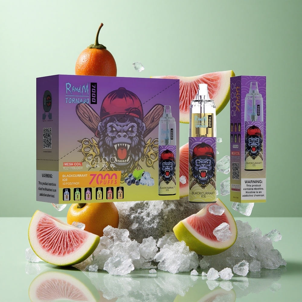 RandM Fumot Tornado 7000 Puffs Melnā Upene Ledus Vienreizējās lietošanas Vape 14 ML E-šķidrums 850 MAH Baterija