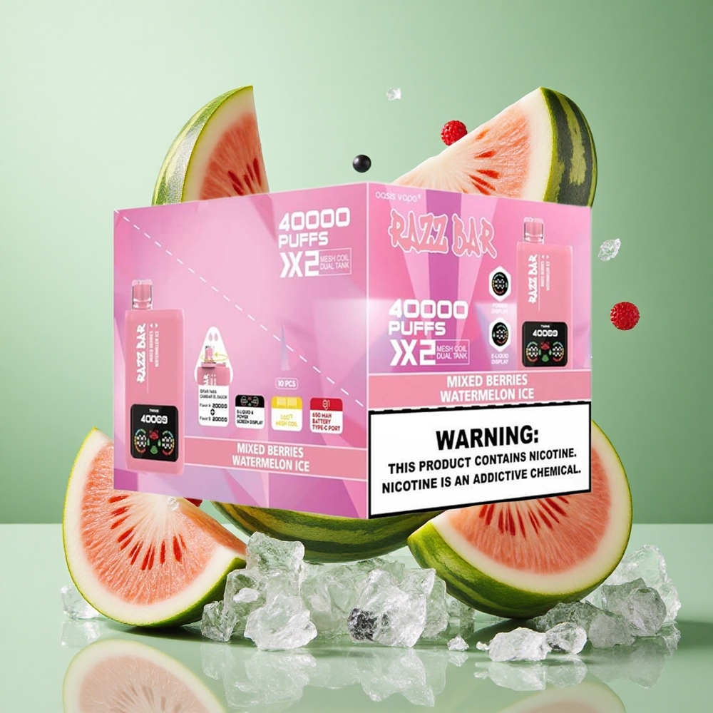 Razz Bar 40000 Puffs Jauktās Ogeles_Arbūzu Ledus ar Ekrāna Displeju un 1.0Ohm 2 Siets Spole