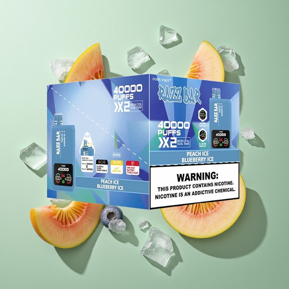 Razz Bar 40000 Puffs Persiku Ledus_Zilenes Ledus Vienreizējās lietošanas Vape ar Ekrāna Displeju un 1.0Ohm 2 Sieta Spoli