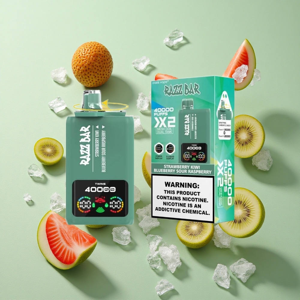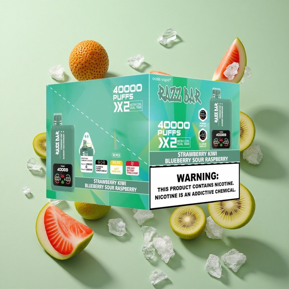 Razz Bar 40000 Puffs Zemeņu Kiwi_Zilenes Skābā Aveņa Vienreizējās lietošanas Vape ar 1.0Ohm 2 Mesh Spole un 650 Mah Akumulatoru