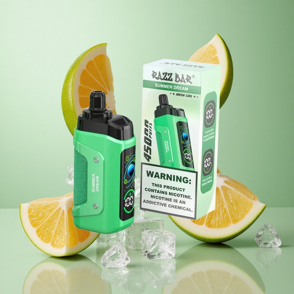 Razz Bar 45000 Puffs Vasaras Sapnis Vienreizējās lietošanas Vape ar 1.0 Ohm Mesh Spole un 20 mg/ml Nikotīna Stiprumu